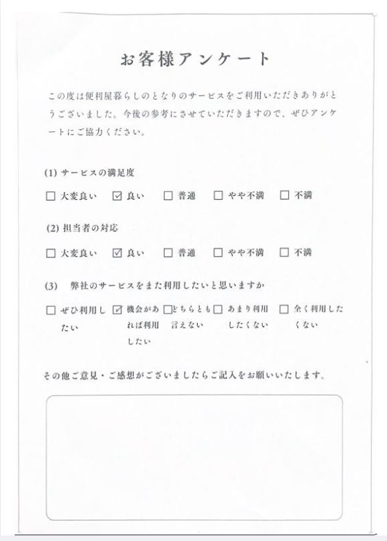私たちはただ作業をこなすだけの「便利屋」ではありません。お客様一人ひとりの気持ちに寄り添い、丁寧かつ迅速な対応を心がけています。